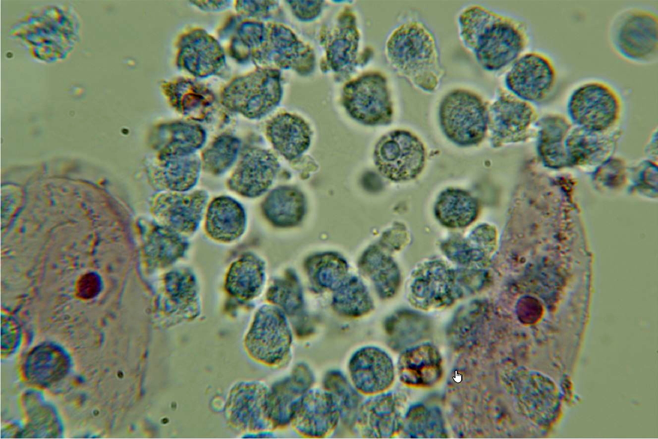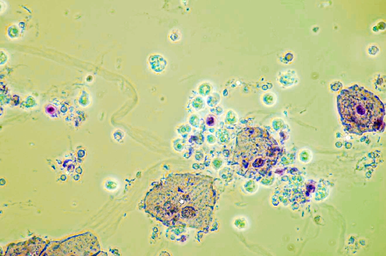 Plattenepithelzellen - treten häufig bei Harnwegsinfektion auf, können aber auch bei gesunden Frauen normal sein
