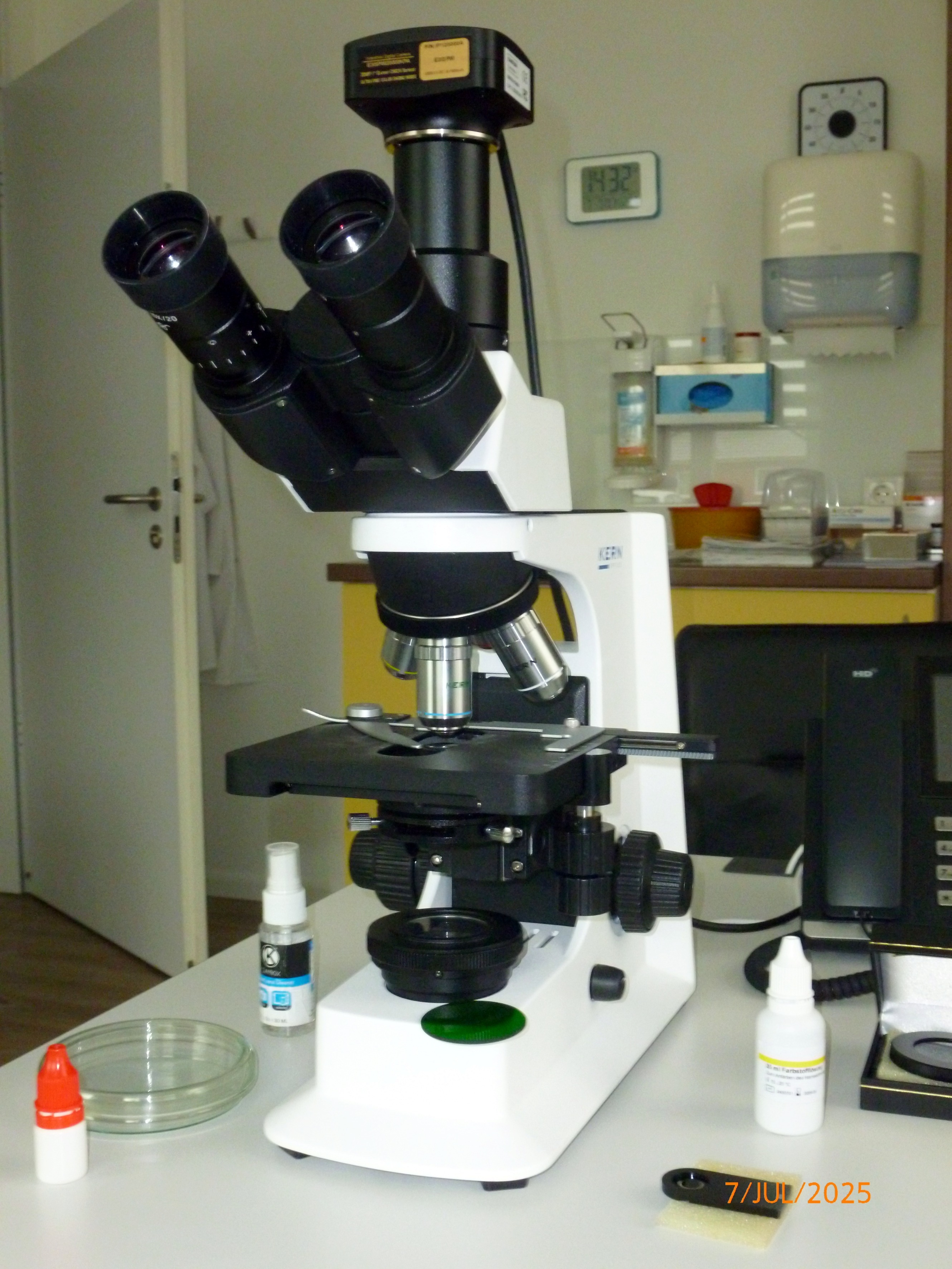 Das Sediment wird zunächst in der Übersicht mit geringer Vergrößerung (100x) untersucht, um die meisten Kristalle, Zylinder, Plattenepithelzellen und andere große Substanzen zu erkennen. Im nächsten Schritt erfolgt die Differenzierung bei höher Vergrößerung (400x). Bakterien werden bei einer Vergrößerung (1000x) unter Einsatz von Immersionsöl betrachtet. Alle Befunde werden erfasstt, protokolliert und bei Besonderheiten auch mikrofotografisch digital dokumentiert.