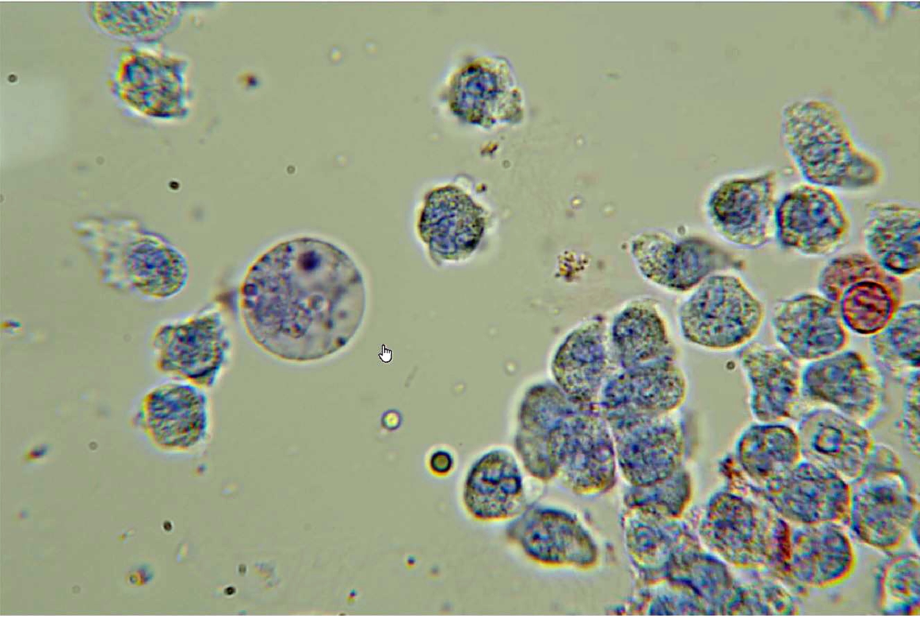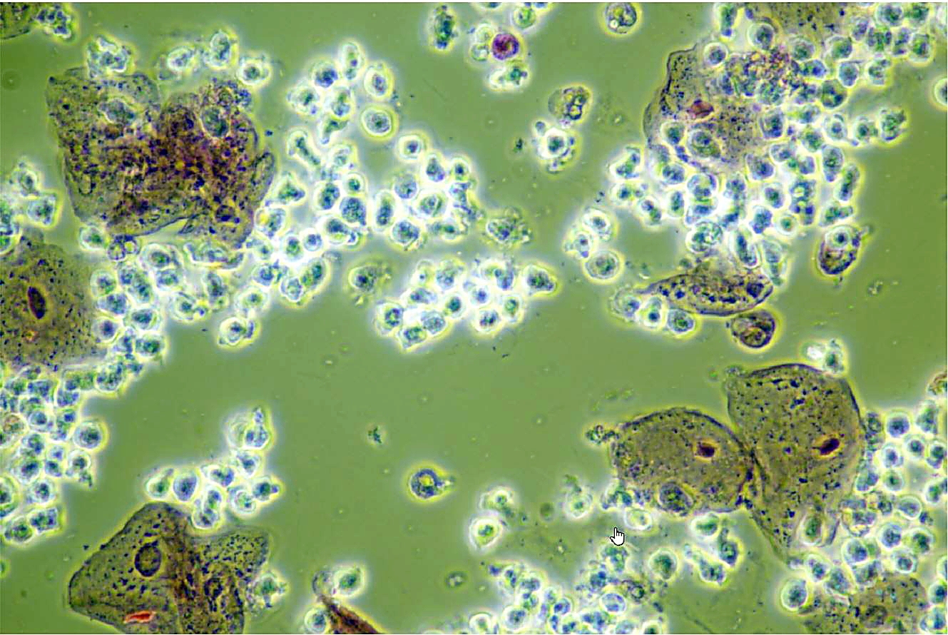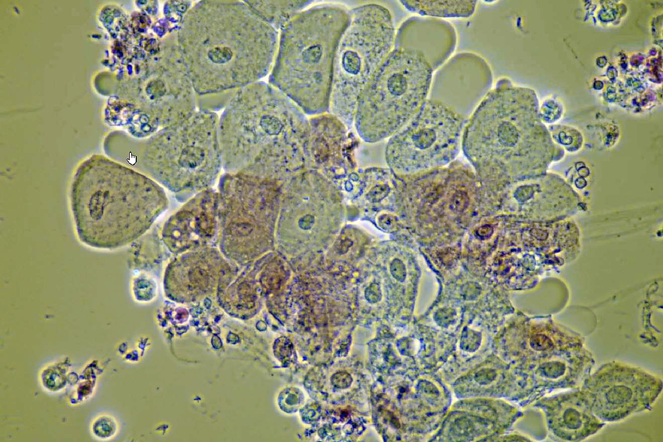 Plattenepithelzellen - treten häufig bei Harnwegsinfektion auf, können aber auch bei gesunden Frauen normal sein